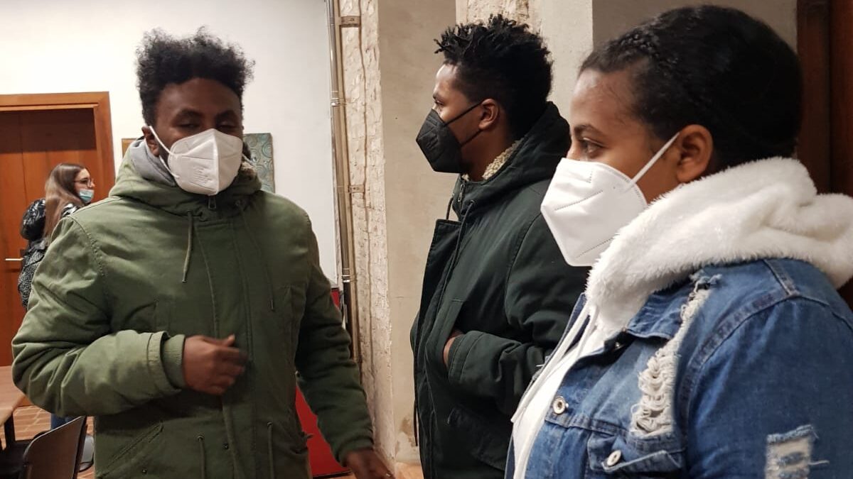 Ragazze e ragazzi, dalla seconda media alla seconda superiore , con don Renato Zenesini e i loro catechisti : Matteo Bassoli, Matteo Gobbi Frattini , Luca con Alice, (Gianluca e Veronica assenti per malattia ma presenti per l’organizzazione) e Giusi della Caritas parrocchiale , si sono ritrovati per uno scambio di storie e di esperienze con Temsegen, Solyana e Thomas arrivati a Mantova in questi mesi insieme a Even di tre anni, figlio di Solyana e la loro mamma Tsige. Si è trattata di un’ occasione per raccontare lo stile dei “corridoi umanitari” con i quali è possibile far arrivare, in sicurezza , persone in fuga dalla guerra , dai cambiamenti climatici o semplicemente per cercare una vita migliore. Insieme abbiamo approfondito le cause delle migrazioni, delle guerre in tante parti del mondo, delle fatiche burocratiche per conquistare la cittadinanza italiana.
